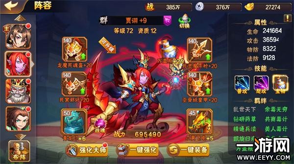 跨服世界敌军系统已经推出有一段时间了,随着最近的一次怒气机制的超大(争议性)变更,由于刷出的敌军大多数战力高于自己,以前的怒气压制一波流逐渐的销声匿迹起来,各种武将的羁绊改革,比武竞技不再是单纯的高战力压制低战力,而更加要求考虑到自己装备的分配和对敌方阵容的针对性调整。我大群雄更是要顺应时代的潮流,以不变应万变。下面就分享下我的心得,以及越战获胜的关键(暗藏小TIPS) 首先展示一下我的武将布阵: 一号位貂蝉,二号位董卓,三号位主角,四号位贾诩,五号位于吉,六号位陈登(5、6可以互换)目前的貂蝉装备及属性: 为什么把貂蝉放在一号位,这里我们只讨论在后手的情况下的PK,有以下几个原因:0.貂蝉是目前群雄12资质中最肉的存在,只缺少一个红色羁绊的情况下,血量达到70的加持,说到这有些心痛,为什么要非让妹子去卖; 1.貂蝉的加8特性魅惑有奇效,魅惑这个技能在运气好的情况下能减少2-3名敌方武将的普攻,并且被攻击者不会回怒(这就是大逆转的关键) 以下是关于魅惑的技能测试后一些值得注意的效果: 1.1 被魅惑的单位如果可以攻击多名目标(如投石车、左慈、孙策、吕布等),被魅惑后的攻击只会针对单体; 1.2 被魅惑的单位在攻击后如果怒气值满,则会自动跳到下一个我方全体回合才释放怒气(这是很关键的一点,你可以憋住对方武将的一次怒气技,并且击杀之,很有可能成为胜负的关键手); 1.3 被魅惑的单位如果是陈登、马谡、蔡文姬和大乔的话,则魅惑无效(因为他们的回怒攻击本来就是打自己人) 1.4 当敌方只剩下一个人被魅惑的情况下,会自己扇自己的耳光 2.在某些战斗中,如果有幸没被第一轮减怒的话,则可以反手对对方进行控怒(说的就是你,陆娘娘) 关于貂蝉的分析已经结束,下面我们讨论一下2号位董卓:在和于吉更换进阶加6属性后,董卓的定位只能在于前排,放在2号位的目的在于针对对面的主力前排输出,在加8后一刀可以砍掉主角或其他武将的25点怒气,间接的缓解了对面的攻势,鉴于其他的位置需要,您老就给我窝在前排吧 3号位主角:群雄的主角才是真主角 鉴于目前的属性及羁绊分配,注定了铁打的主角流水的武将,能抗能输出就看你了,皮卡丘!!(安置在后排可针对某些特殊的对阵) 4号位武将:贾诩(甲鱼),作为目前为数不多值得肯定的核心武将,群雄输出及控制的重担基本上一肩挑起。 安置在四号位的原因是:对于高战进行反手是,急需贾诩反手对敌方的前排进行控制并且收割来打出输出,在四号位可以有效的规避一大波的限制技能,并打出可观的伤害!!! 五号位于吉:可以灵活调整,虽然说于吉(于一轮)的输出十分爆炸,但在对战高战失去先手的情况下很容易被秒杀,躲开对面的一轮爆发,并放出一波技能就可以安心的离开了。 六号位陈登:辅助加怒和补伤害为主,不用多说。 了解更多相关信息,请前往http://sy.yzz.cn/ku/fknsg2/ [编辑:二蛋]