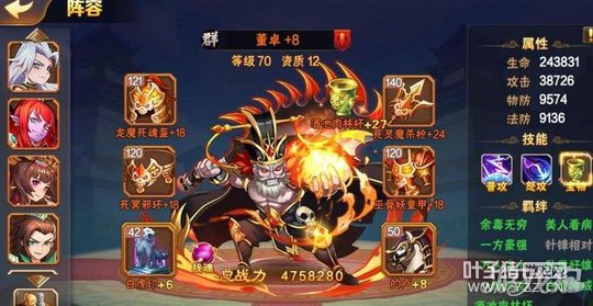 上阵:董卓,于吉,贾诩,貂蝉,陈登 小伙伴:陈宫,文丑,张角,华佗,袁绍,南华 点评:该阵容共44羁绊,除了于吉少3个羁绊,其余都只少1羁绊。可以说羁绊非常足够,而且于吉的羁绊都是没出的。该阵容关键是还上了怒气武将,非常适合爆发。从战力来说,该阵容的伤害非常足够,只是缺少了全体放毒的角色,热点武将于吉虽然消耗元宝,但是确实非常给力,也是群雄主力。总的来说也是比较流行的主流阵容。 [编辑:叶子猪小秘书]