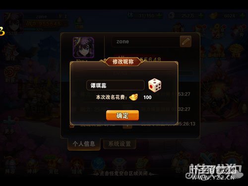 名字如何更改? 玩家们想要改名字的话,就得去主页点击头像。这时会进入一个新的页面,玩家们在改名的长方形里,输入自己想更改的名字就可以了。 不过玩家们要注意了,首次更改是免费的,以后想要更改名字都是需要元宝的。 如果是土豪玩家们的话,我想也许都不在乎那几个元宝吧!以上呢?就是改名字的方法,你们学会了么? [编辑:叶子猪小秘书]