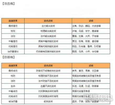 战魂主要分为两种类别,攻击型和防御型,而武将一开始也只能各装备这两类战魂,无法装备两个攻击魂或者两个防御魂,只能等到等级提高后开放新的魂槽才能装备同类的战魂。 [编辑:叶子猪小秘书]