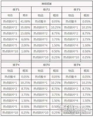 备注:以上同品质武将的获取均为均等概率 看完这些抽取几率,是不是有点想哭的冲动呢? [编辑:叶子猪小秘书]