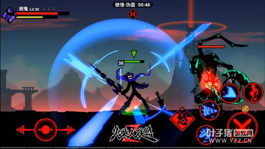 画面特效:★★★★★ 随着核心技术的提升,游戏的画面与特效效果也是“水涨船高”。《火柴人联盟2》在前作的基础之上,邀请国内最顶级美术制作团队,历时两年倾力打造,重塑并创造了更多的火柴人英雄,将国漫剪影画风演绎到最极致。与此同时,数十位英雄截然不同的招式技能,不同的释放次序和连击次数,也让游戏中的无限连击、秒杀大招、华丽技能等特技效果出现更多元化的冲击性视觉体验。就拿剑鬼的大招“神鬼乱舞”来说,发动大招时的光效就很赞,大招发动过程中还运用了光影的明暗处理,给人一种酷炫吊炸天的感觉。最后的闪现一剑,从画面特效上就能深深地感受到剑鬼狂斩之下,寸草不生的伤害效果。二十个英雄,就有二十个让你大饱眼福的大招特效,冲着这波充满诚意的特效,小编我给满分。