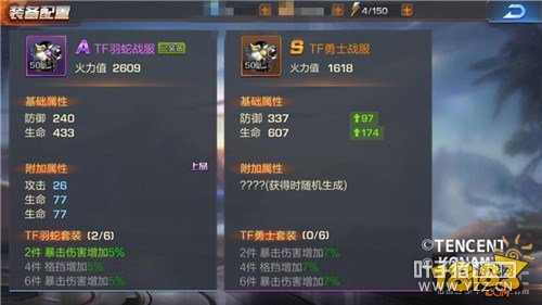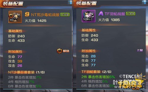 附加属性对比 对比对象如图。各位指挥官对比的时候可以通过对比攻击,生命,和防御的单项数值来判断属性的提升效果。图中生命都是77,但是由于极品属性攻击增加到了39,普通情况下攻击的单项值也是26。以上数据表明40级橙色装备的附加属性等同于50级紫色装备的附加属性。 小队长提示 收集齐相同系列的6件橙色装备能有更为强大的套装效果提升,给予指挥官们极大的战力提升。橙色套装的套装效果有三项,2件增加暴击7%,4件增加格挡7%,6件又增加增加暴击7%,可以看到其中两项为暴击增幅项,一套橙装暴击伤害的增幅达到了惊人的14%,可谓输出利器。橙色装备不仅颜色炫酷,能抵御成吨的伤害,还以增加如此之多的暴击伤害,正可谓攻防兼备。