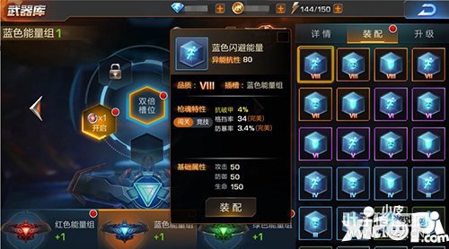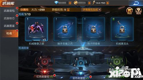说完枪魂,再来看看枪魂能量块,如果说枪魂好比武器“弹夹”,那么枪魂能量块就可以理解为一些具有特殊效果的“子弹”了,只是这些“子弹”并不是被填充在枪魂“弹夹”里,而是有着独立的“包装”——能量插槽组,且作用的效果不在枪,而在英雄角色。 枪魂能量块在种类的划分上,一共有四大类,分别是红色能量块、蓝色能量块、绿色能量块和经验能量块。其中红、蓝、绿色能量块都带有属性,红色能量块可提升攻击、暴击、命中属性,蓝色能量块提升防御、防暴、闪避属性,绿色能量块提升暴击率、闪避率和破甲抵抗率,经验能量块则只是作为提升有色能量块经验的消耗材料。 有色能量块根据颜色不同可分别插入相应颜色的能量插槽组中,镶嵌后即刻激活能量块效果提升角色相应属性。每一个能量插槽组中还都存在着双倍插槽,镶嵌其中的能量块可双倍发挥功效哦!