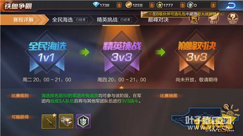 火力值代入&军备组合加成 争夺积分赢晋级 《魂斗罗:归来》3V3精英挑战和此前全民海选阶段一样,都是代入火力值的战斗,角色穿戴装备数值、角色武器养成等都可以直接在竞技中体现出来,因为这里选拔的就是最顶尖的战士,当然就算个人实力再出众,这里是团队作战,队友实力不够依旧不一定能完全碾压对手。 既然是团战,那就会有团队上的策略配合,除了英雄阵容的选择搭配,战场上的出击战术等,全新的军备组合功能,也是需要团队考虑的重要因素,因为军备组合会根据队伍携带武器的种类丰富程度,给予相应的防御、生命、攻击属性百分比提升效果。 3V3精英挑战是军团战中“承前启后”的战斗,全民海选中位列军团积分排行前50名的军团,其所有成员皆可参战!也只有在这一阶段获取到最多积分,在服务器军团积分排行榜上名列前茅的军团才能晋级最终的巅峰对决。3V3精英挑战中,每一位参战战士最多拥有5次参战机会,当失败次数达到3次,将无法参加后续战斗。同时,军团成员无论胜负都能获得积分,不过获胜自然积分更高,请各位战士务必认真对待每一场战斗!