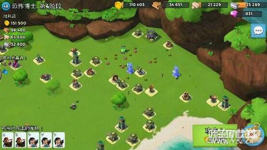 中间的那个。能炸掉的话就好办了。最上边的那个打不到本下。你炸掉中间的,直接上胖子去拆火箭。火箭没了,再上妹子。然后去本下拆迫击炮收本。因为中间火箭把所有地方都笼罩了。你看看差多少点能量炸掉。差的少,你可以上一船胖子一船妹子去左上角或者左下角收集能量。也必须炸了中间的火箭。炸了他才有后门的进攻。中间火箭一没,你就上野人拆狙击塔,野人能抗能回血。拆狙击塔拆火箭迫击炮。都拆掉了。再去拆本右下的迫击炮。一切结束,再上最后一船妹子。绕过去爆。 爆本。野人拆本右下迫击炮时,要绕着加农炮走。总之火箭不掉,拿不下这个图。你有6船,三船野人,两船妹子,一船胖子。能量差的少,可收。不然我也没啥办法。要不行,你再多带一船妹子?看看那船能换再试试吧。