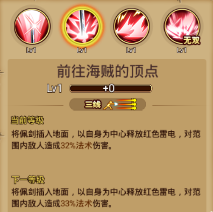 外号红发,是伟大航路后半段新世界的四皇之一。原为海贼王罗杰船员,后自己成立海贼团,经过自己不断的努力与变强,成为四皇之一。拥有强大的霸王色霸气,武器为西洋剑。精于剑术。世界第一剑豪鹰眼曾与之一战名震大海,单凭剑术与鹰眼米霍克不相上下;同时也是主角路飞自小就尊敬的人 。 基本信息 名称:杰克斯 生日:3月9号 恶魔果实or能力:剑术 霸气种类:霸王色霸气 角色羁绊 1、未来的誓约: 和路飞上阵可以增加10%的法术防御 2、强者相惜: 和波波克上阵可以增加10%的法术攻击 3、红发的强大: 装备S级法抗硬币S可以增加912的法术攻击 4、红发的气度:装备S级生命硬币S可以增加131的法术防御 获取途径:星级奖励、竞技场积分兑换、商城、活动,航海日志 属性类型:法术型 技能介绍及使用心得: 普通攻击 攻击属性为物理攻击,以5个挥剑斩击动作为一轮,第五个动作为向前斩击,攻速挺快,第五次攻击攻击范围大。 技能介绍 ①普通技能:霸气 技能介绍:单线范围,在剑伤缠绕霸气让武器变长,自身增加buff,可使普通攻击变成三线攻击。 使用心得:使用该技能会出现一个蓄力动作,挥剑向天,射出一道红色雷电,全身闪烁红雷;该技能CD达到即可使用。 ①普通技能:前往海贼的顶点 技能介绍:三线范围,将剑插入地面,以自身为中心释放红色雷电,对范围内的敌人造成部分法术伤害。 使用心得:该技能是个范围技能,使用该技能会有蓄力动作,会闪烁红色雷电,攻击范围挺大。 ③普通技能:剑气 技能介绍:单线范围,用普通的剑术向前劈斩,造成直线伤害。 使用心得:使用该技能会有一个挥剑斩击的动作,对直线的前方敌人进行斩击伤害,攻击距离长。 ④无双技能:王的资质 技能介绍:单线范围,用霸道的剑术向前劈斩,产生三线飞起 使用心得:使用该技能后出有一个挥剑劈斩的动作,对前方三线敌人进行劈斩。 总结:杰克斯拥有强力的法术技能,擅长于混战,输出非常高,但连招难度挺大,适合高级玩家使用。 [编辑:叶子猪小秘书]
