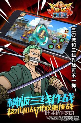【独创三线操作,开拓格斗新维度】 激情澎湃的格斗,是《航海王激战》最大的亮点,在此次封测中,海迷们可操作原著中近50位人气角色,输出不讲理的路飞、剑气霸道不长眼的佐罗,一套激爽痛快的combo横扫敌军,才是真正的航海王!此外,《航海王激战》独创三线格斗走位模式,需要玩家在上中下三路不停变换走位,这一设计无疑让战斗操作更加多元化,大大提升了格斗操作的刺激感!