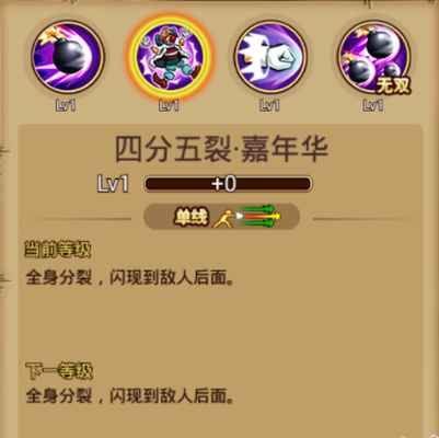 ②普通技能:四分五裂·嘉年华 基本介绍:单线攻击,全身分裂,闪现到敌人后面。 使用心得:使用该技能时,身体会闪现到敌人的背后,达到出其不意的效果,如果敌人处在两边,巴奇在中间的话,使用技能后有可能待在原地。不可轻易浪费该技能,充分把握好闪现空间。