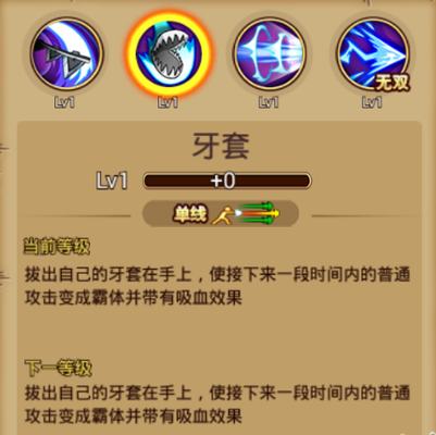 ②普通技能:牙套 基本介绍:单线攻击,拨出自己的牙套在手上,在限定时间内的普通攻击变成霸体并带出吸血效果。 使用心得:使用该技能时会出现一个技能效果动作,使用普通攻击无异常,但有技能效果。