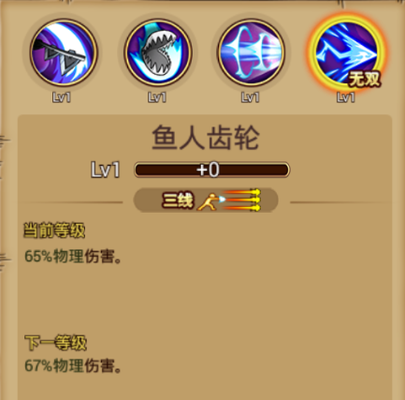 ④无双技:鱼人齿轮 基本介绍:三线攻击,用鱼人的利齿撕裂目标的身体,造成物理伤害和流血效果。 使用心得:使用该技能会出现一个扩胸的蓄力动作,全身向前飞起突进后展出一个旋转技能,造成三线物理伤害,该技能是一个非常强力的技能。 总结:阿龙是一个较为强力的角色,技能都附带着其他效果,且较为容易培养和提升。 [编辑:叶子猪小秘书]