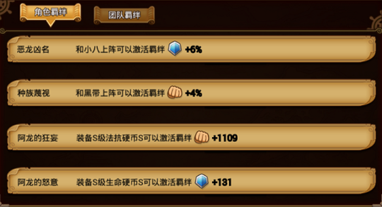 1、恶龙凶名:和小八同时上阵时可以增加6%的物理防御 2、种族藐视:和黑带同时上阵时可以增加4%的物理攻击。 3、阿龙的狂妄:装备法抗硬币S时可以增加1109的物理攻击。 4、阿龙的怒意:装备生命硬币S时可以增加131的物理防御。 获取途径:星级奖励、竞技场积分兑换、商城、活动,航海日志等 属性类型:物攻型 技能介绍及使用心得: 普通攻击 普通攻击分为5段,前三段普通攻击为普通双刀斩,第四段是卷起龙卷风击起敌人,第5段普通攻击从空中斩下。 技能介绍