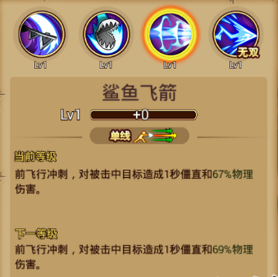 ③普通技能:鲨鱼飞箭 基本介绍:单线攻击,向前飞行冲刺,对被击中造成1秒僵直和部分物理伤害。 使用心得:使用该技能时会有一个蓄力的前置动作,向前飞起攻击单线目标。该技能可在使用具备牙套,锯刀等技能buff后进行使用,形成连招,造成连续伤害。