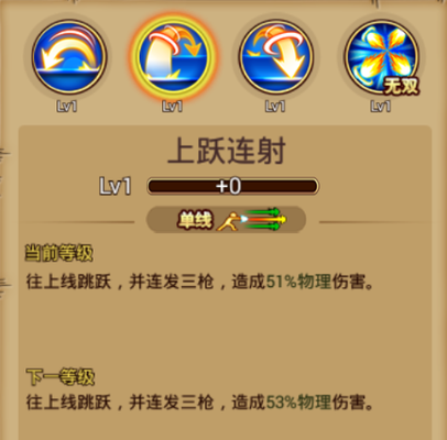 ②普通技能:上跃连射 技能介绍:单线攻击,施放该技能,向上线跳跃并射击对前方敌人造成伤害 使用心得:该技能是一个非常好的跨线位移技能,能及时的躲避伤害。使用完该技能会跳跃到其他线路。