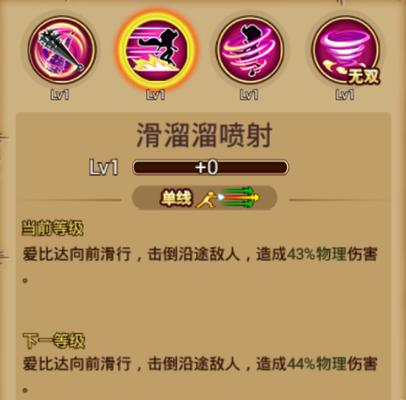 ①普通技能:滑溜溜喷射 基本介绍:单线范围,向前滑行,击倒沿途敌人,造成部分物理伤害 使用心得:使用该技能时,爱比达向后跳出一段距离,然后瞬间向前滑行,击倒敌人,且该技能是一个很好的位移技能。