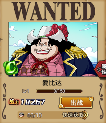 基本信息 名称:爱比达(胖) 等级:C级 恶魔果实or能力:大铁棒 赏金:500贝利 角色羁绊