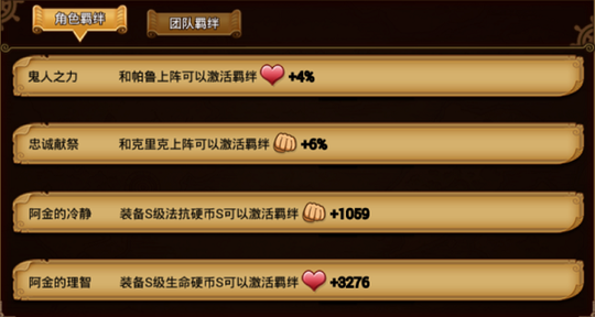 1、鬼人之力:和帕鲁上阵可以增加4%的生命 2、忠诚献祭:和克里克上阵可以增加6%的物理攻击 3、阿金的冷静:装备S级法抗硬币S可以增加1059的物理攻击 4、阿金的理智:装备S级生命硬币S可以增加3276的生命 角色获取途径:商城卡包,英雄副本掉落,成就任务奖励等。 属性类型:物攻型 技能介绍及使用心得 普通攻击:攻击属性为物理攻击,以6个动作为一轮,第六个动作击倒对方,攻击速度极快,但是攻击跨步非常小。 技能介绍