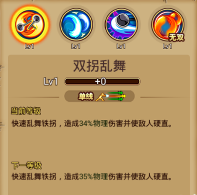 ①普通技能:双拐乱舞 技能介绍:单线范围,快速乱舞铁拐,造成部分物理伤害并使敌人无法行动 使用心得:玩家可以运用第二个技能拉拢对方,再接连使用该技能进行连招,该技能10次攻击速度非常快,打击感强;使用技能后可衔接上普通攻击形成连招。