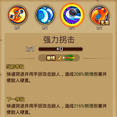 ③普通技能:强力拐击 技能介绍:单线范围,施放技能后,向前快速突进,使对方无法行动并造成大量物理伤害。 使用心得:该技能施法速度快,也可作为位移技能躲避伤害,可衔接上普通攻击连招。