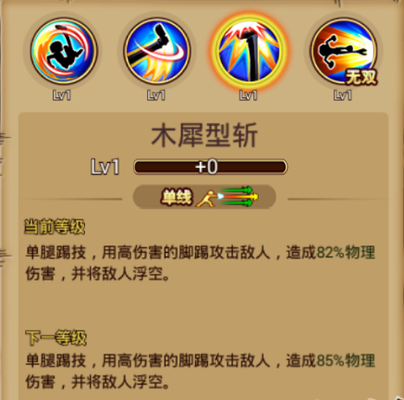 ③普通技能:木犀型斩 基本介绍:单线范围,单腿踢击,用高伤害的脚踢攻击敌人,造成2次物理伤害,并将敌人浮空。 使用心得:该技能释放时,山智将向上方发起一记单腿踢击,再俯身利用身体的延展性双腿追击浮空。此技能释放速度较快,但打击的范围仅限身前一个身位。因此要特别注意敌人的位置。