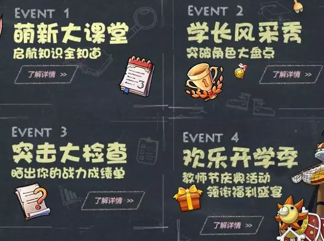 为了让莘莘学子在学习之余在《航海王》也能乐在其中,全新的开学季专题今日上线,黑板报风的设计元素是不是感觉很亲切呢?想了解更多开学季专题的秘密? 那就立即点击 此处 一探究竟吧! 四大板块 先睹为快