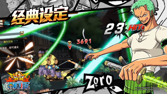 【炸裂满屏的角色大招】 《航海王激战》作为首款正版航海王格斗手游,在角色技能上也是高度还原的。玩家可以使用橡胶果实能力者路飞、分裂果实能力者巴奇、鹰眼、红发香克斯等五十多位经典角色和过百种人物专属技能。例如玩家先通过使用路飞施展橡胶果实能力技能——橡胶机关枪把敌人打出硬直,然后紧接着召唤海盗猎人佐罗使出酷炫绝技三千世界,全场小兵瞬间一刀秒杀,让玩家可以享受最还原原著的格斗体验。