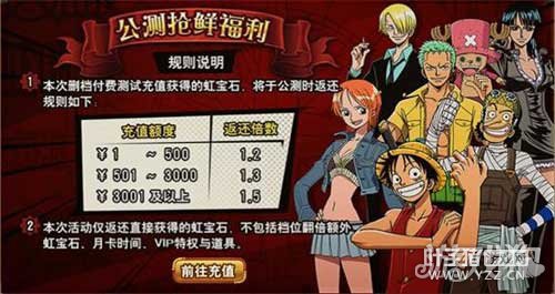 活动五:首充双倍大回馈,封测充值公测返还! 活动时间:公测抢鲜服开测期间 活动介绍:测试期间,每种额度(非月卡和尊享卡)首次充值即可获得双倍虹宝石回馈;封测期间进行的充值,会在不删档公测时以一定比例返还。>>点击查看详情<<
