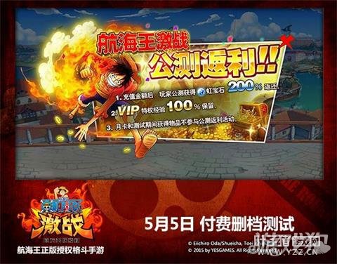 【200%充值返还,助你激战新世界】 为了回报广大海迷的殷殷期待,此次测试《航海王激战》将为大家带来200%充值返还、100%VIP经验返还的诚意大反馈!在前面几次付费测中充值的玩家,也将享受这一特权优惠!此外,《航海王激战》给各位准备了整整八重精彩福利大礼!船长们不仅连续登录7天能获得七武海鹰眼,每天登录都将海量的虹宝石等奖励相送哦!海量珍贵角色碎片、升级道具等你来拿,千万别错过哦!