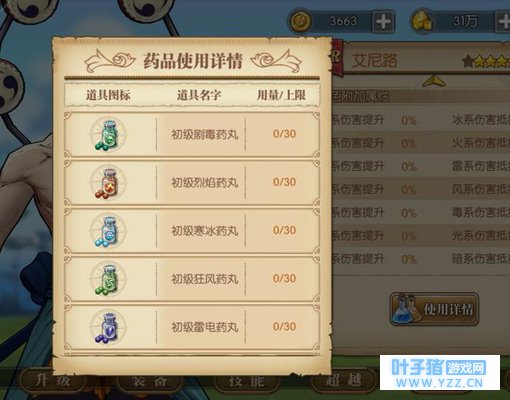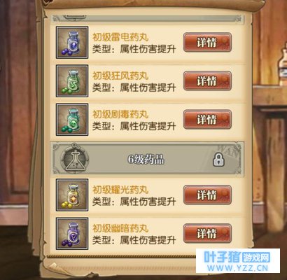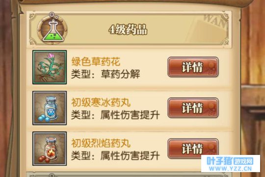 4级药品提供属性药丸,可以永久提供属性伤害,对于一些非常需要属性制造伤害的角色,是非常重要的。这也是为什么兵长一直强调,后期要培养带有属性伤害,与真实伤害的角色。