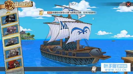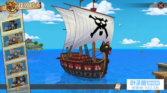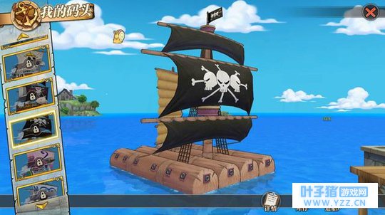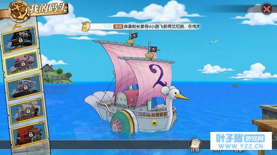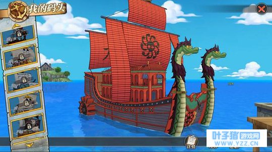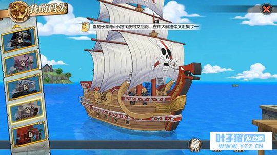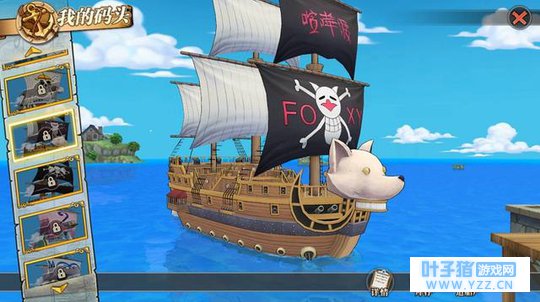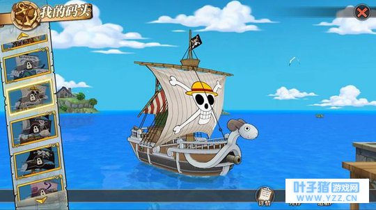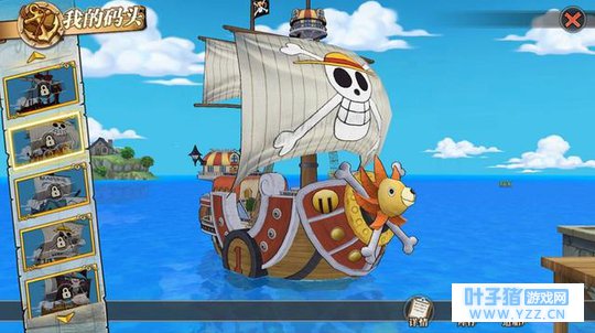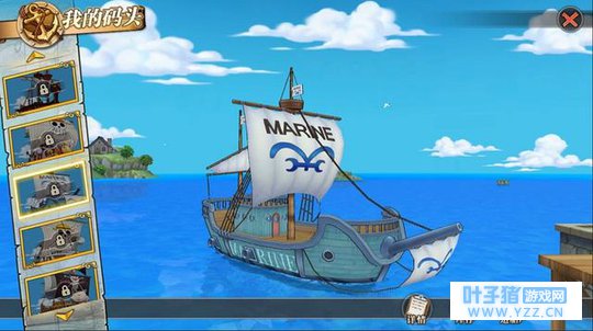 码头场景中可以看到目前系统中的船只。我们草帽团的千里阳光号很经典,不过乔巴小可爱更喜欢红发的雷德佛斯号,原因只有一个字,帅!