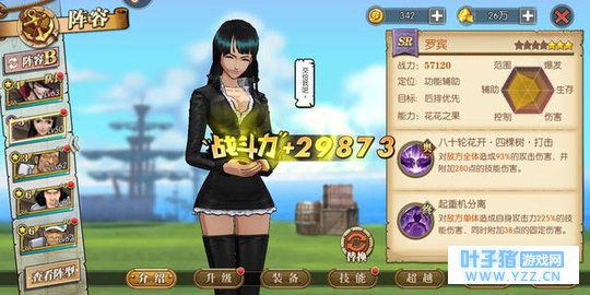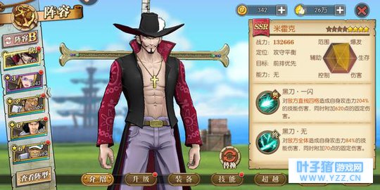 强度很高的一套阵容,层次也非常清晰,坦克是当前火热的赤犬,每回合刷新护盾,辅助为罗宾与乔巴,回血控制全部都有。输出则是依靠鹰眼与黄猿。 主要培养 :鹰眼,次之黄猿。