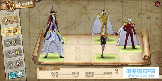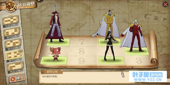 阵容一鹰眼、乔巴、罗宾、赤犬、黄猿