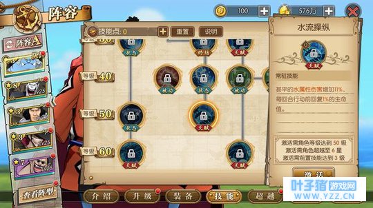 千呼万唤一跳再跳,甚平终于上线了。下面是小编得到的《航海王:燃烧意志》中SSR甚平的相关资料,跟还没有甚平的大家共享~这是一个新鲜出炉的1级3星甚平,我们简单看一下他的各种属性。定位是“后发制人”,那一定是说甚平速度比较慢,果然,初始速度只有88。目标是“前排优先”,没有果实能力。范围、爆发、生存、伤害值都很高,看样子应该既是输出又是坦克。 接下来我们看一看甚平的技能树。首先看他的主动技、终结技和奥义技。击水、群鲛、水心·海流过肩摔是群攻技能,范围比较大,伤害一般般。鲛瓦正拳、武赖贯是单体技能,伤害值意外地还可以。如果是我的话会选择大范围覆盖+单点集中爆发的攻击方式,比如击水+水心·海流过肩摔+武赖贯这种组合。