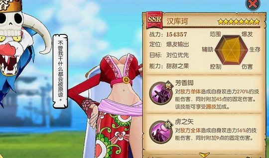 从图片上看,女帝的模型还算可以。不过截图的清晰程度不高,估计没有调到最高画质。角色的定位是对位优先,与路飞一样,所以战阵阵容布置方面,可以稍微思考一下。