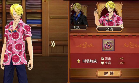 索隆的时装来自水之都,同样不算太华丽,提供的属性为攻击与防御。喜欢索隆的可以考虑一下。 娜美