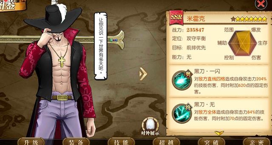 不过相对来说,对剧情有帮助的,甚平算一个,女帝算一个。路奇和莫利亚其实也有不错的效果,不过相比之下,甚平与女帝更突出。 甚平能锁血以及回血,能抗能输出。对于70往后那些变态伤害的BOSS有着很好的克制作用。