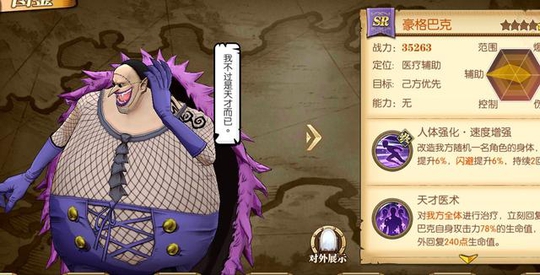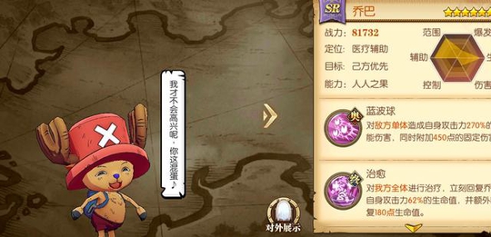 另外目前纯正的奶妈,也真只有SR之中存在,SSR的熊只是个半肉辅助。而SR之中,无论是乔巴还是医生豪哥巴克,都有着不错的治疗能力。