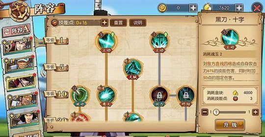 黑刀丶十字伤害偏低,2费技能,又没有状态辅助,不推荐点,还有很多其他强大的技能 黑刀丶斩本身单体伤害很高,配合斩杀状态还是非常强大的,不论是打BOSS,还是打肉,都是厉害的,但是因为是4费技能,又必须残血才能发挥最大力量,所以不推荐第一回合使用 等级5:天赋剑气强化点满
