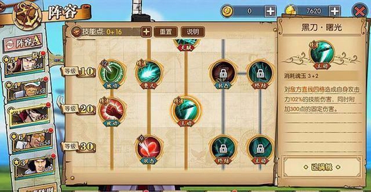 奥义直线伤害,配合斩断效果,伤害极高,必须点满 等级20:攻击强化点满,黑刀丶曙光