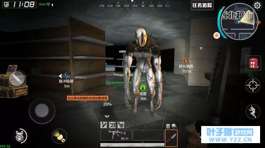 落地后的冒险看起来更像是《丧尸围城》的展开,地图中密密麻麻出现的丧尸群相当考验玩家的操作,虽然有各种热冷兵器可供使用,但面对如此数量的敌人还是有些手忙脚乱,更何况每一局游戏还需要玩家完成各种任务才能安全脱出。
