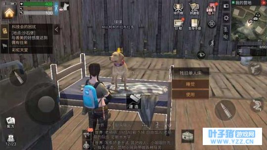游戏中的狗狗真的是越来越聪明了,尤其是拉布拉多,最喜欢的就是待在床上,如上图所示,主人还没有躺下睡觉呢,狗狗反而先站在了床上,仿佛在说“这是我的地盘,我和你天天上战场,当运输机,出生入死,一张床你都不给我吗?”哎,想想也对,在这末日里面狗狗天天和我们一起出生入死,打过僵尸,打过boss,什么大风大浪没见过,随着战斗经验的提升,智商肯定也提高了,这些狗狗都开始有自己的想法了。 三,肝帝的背包