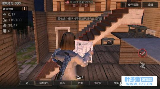 任你拆 这个建筑就不厚道了,你爱拆就随便给你拆。一边是一层层的地板,你要废几把枪?另一边楼梯上放一个柜子就可以了,但是偷家贼就懵逼了。打还是不打。