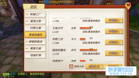图4 团所交代的任务都相对很简单呢 【 勇者的委托 】 30级之后的勇者的委托活动,玩家可以组队前往梦魇之地清除怪物。勇者的委托每次共10轮,每轮10只怪物,消灭就可以获得大量经验奖励。玩家还可以通过消耗勇气值(在主界面挂机按钮处领取)获得多倍经验奖励。