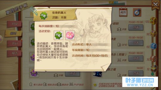 图5 快快组建你的勇者小队 【 夜晚的篝火 】 当夜幕降临时,团所会燃起篝火,召回所有的团员参加晚间的聚会,谈论这一天各自的见闻,而团所为了帮助大家更快成长,所以在篝火附近挂机就可以轻松获得大量经验,各位玩家可不要错过哦,这个活动有效时间只有15分钟哦~