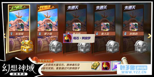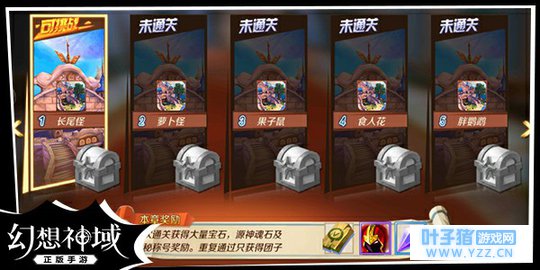 图5 结束后还可以稍作休息,欣赏下森林景色 通关奖励 完成活动后,去章节界面点击已通过关卡的宝箱,可以获得奖励。通关奖励包括宝石、源神魂石以及活动限定称号等,重复通关只会获得团子。