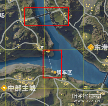 上图是来到3号点位堵桥! 安全区问题:这里是地图核心地带的交通枢纽,第一个信号安全区几乎都会刷在这附近,如果没在里面,也没关系,这里交通这么方便哪里不能去呢? 说到交通,小缆区这里经测试,是必定会刷车的地点!