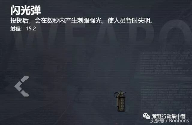 闪光弹 这个真没什么用处。扔一下眼睛都可能产生幻觉,我一般就是要么不捡,要么就是捡起,然后往外扔,就是很好玩,吓队友。相信很多人,和小编一样。 ●烟幕弹: