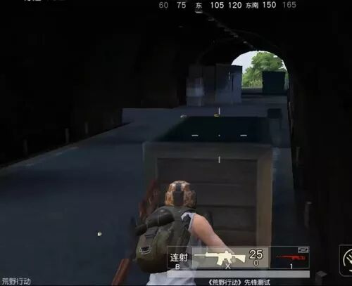 我方视角 2、尽头跳跃点射法 防空洞中的道路也有尽头,一些装备会刷新在此处,许多玩家会为了寻找装备,放松警惕。 那我们该如何利用好通道尽头现有地势,进行埋伏呢?