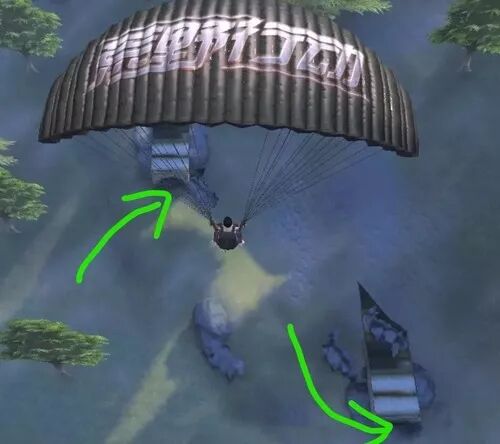防空洞位于老城东区、南郊城北区郊外的山脚下,请认准深色地带最左边缘处,谨防迷路。 由于航线的随机性,并不是所有的航线都会直接飞过防空洞上空。 当航线偏离标记点较远时,可以选择降落在距离其较近的公路,找一辆拉轰的车,全速前往防空洞。 时机及降落洞口选择 当飞到标记处上空,我们可以看到四个像砖头一样外形的建筑,神秘防空洞便到站了! 防空洞一共有四个洞口,但由于地势高低不同,洞口两两一侧,如图分布。 降落过程中,可观察到同一侧的另外一个洞口,因此,需要时刻留意周围是否有敌人降落。