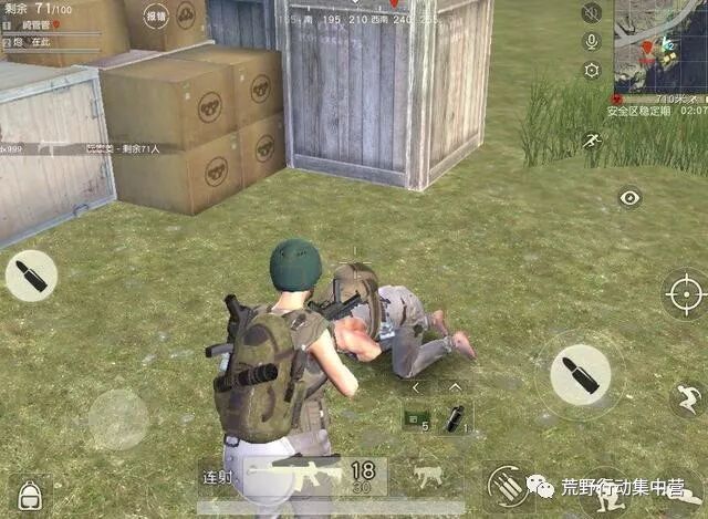 2.移动的时候,最好是可以在这个掩体和下一个掩体之间移动,而不是在空旷的草地上瞎跑,更不要在马路上跑步前行,这些地方都很容易暴露给别人。从这个掩体到下一个掩体之间移动会让敌人发现你的时候躲进掩体,同时可以观察敌人位置发起反击,就算被击中也可以躲在掩体后面嗑药或者等待队友救援。